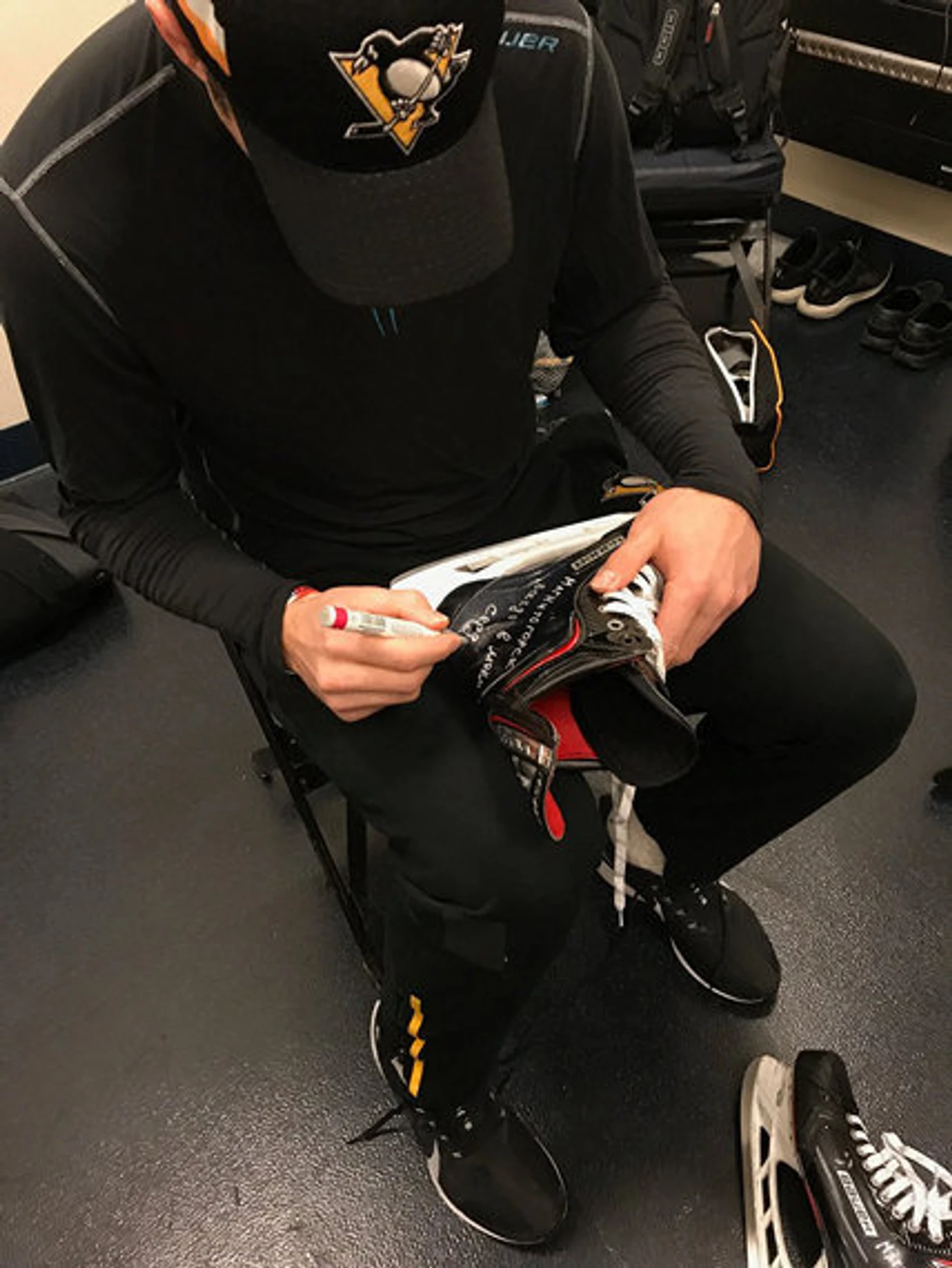 В этих коньках Малкин сыграл против «Рейнджерс» и стал второй звездой матча. Игрок хотел выйти на лед с траурной повязкой, но выяснилось, что это противоречит правилам лиги.