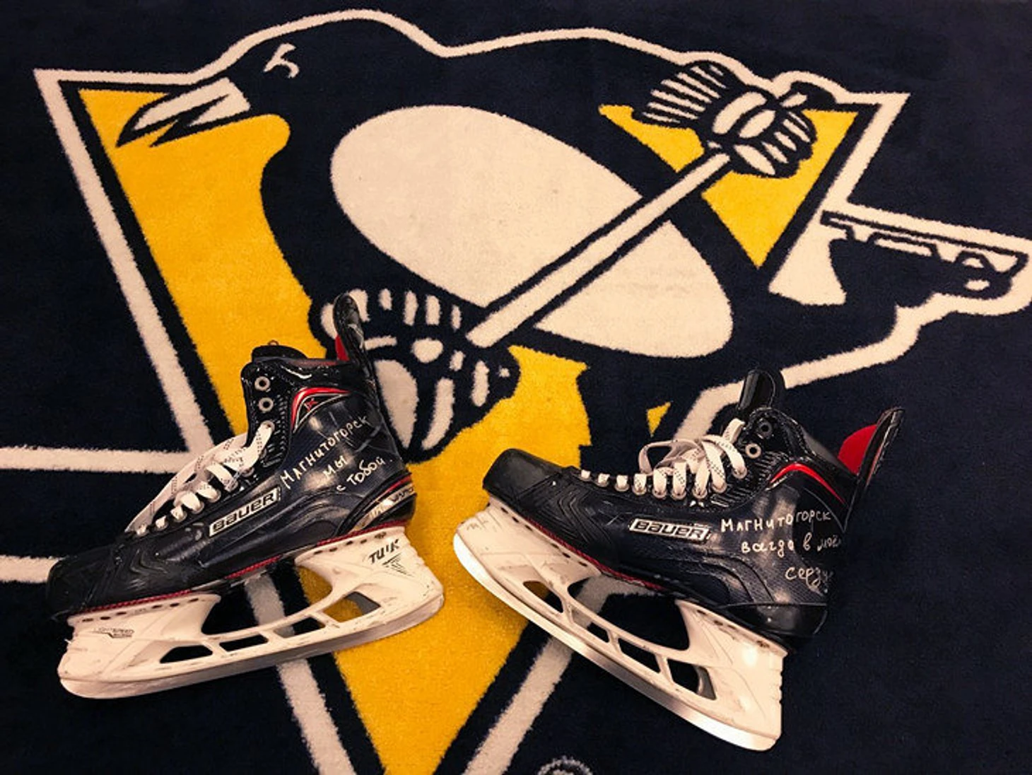 Форвард «Питтсбурга» Евгений Малкин почтил память жертв взрыва в Магнитогорске и нанес на игровые коньки надпись: «Магнитогорск, мы с тобой», на другом – «Магнитогорск всегда в моем сердце».