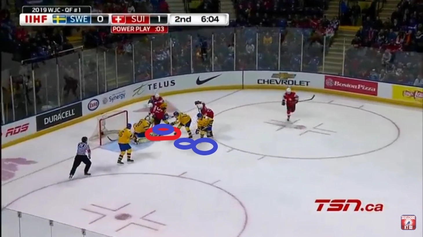 Второй гол - еще один провал. На пятаке "Тре крунур" не смогла вытеснить хоккеистов сборной Швейцарии с пятака, а те добили ее точно в угол ворот.