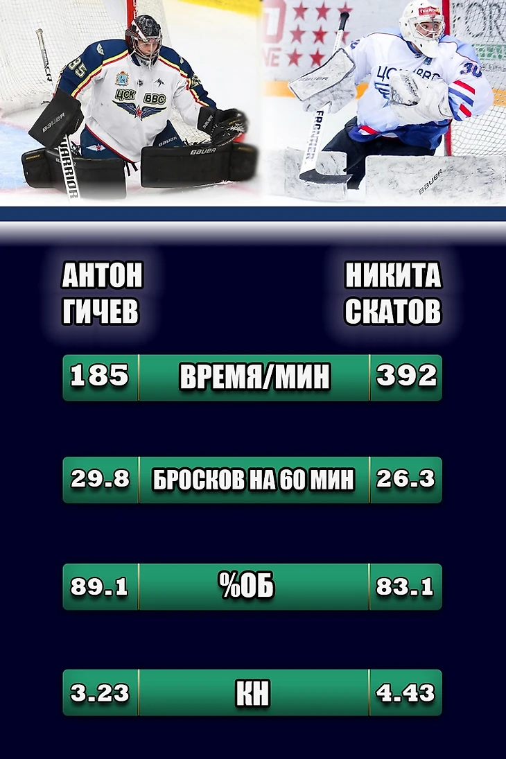 Основной вратарский состав на этот сезон был сформирован так: Станислав Жучин и Никита Скатов +1 из «Нефтехимика». Но по ходу сезона все пошло не по плану. «Нефтехимик» отпустил Андрея Макарова и перестал присылать в Самару вратаря. Из-за травмы выбыл Станислав Жучин. Откровенно говоря, слабую игру показывал Никита Скатов. Пришлось подписать Даниила Яковлева, но у того были проблемы с уверенностью, что сильно сказывалось на его игре. Этих проблем можно было избежать, сделав правильный выбор в межсезонье. Прошлый сезон в составе ЦСК ВВС завершал Антон Гичев, которого можно было оставить и на этот сезон, но его отпустили. Позвали Никиту. Как результат и 25-летний Гичев и 30-летний Скатов оказались третьими вратарями в своих командах вот с такими статистическими показателями: