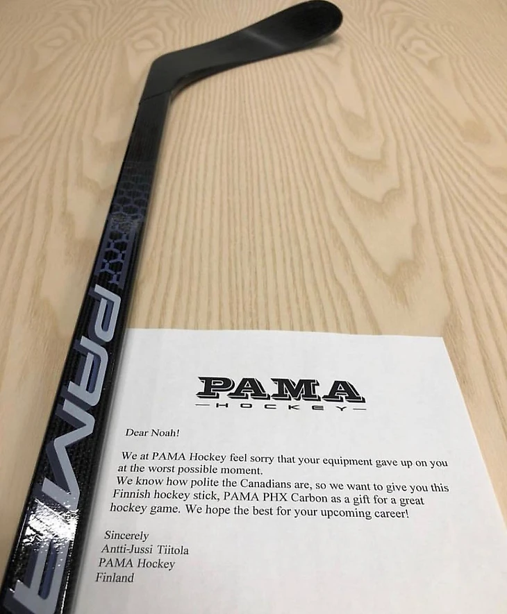 20.54 Помните сломанную клюшку Ноа Добсона в овертайме четвертьфинала, из-за которой Канада не прошла дальше? Финская компания PAMA Hockey прислала защитнику клюшку собственного производства. Годный троллинг.