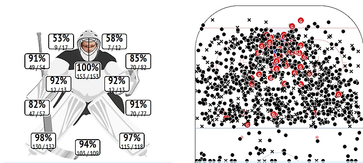 Нужно так же учитывать фактор партнеров: Шестеркин и Сорокин играют в мощных армейских клубах, а «Локомотив» – самая молодая команда КХЛ, что сказывается на числе ошибок – в первую очередь в своей зоне. Но Коновалов уверенно справляется с давлением соперника на свои ворота и достает для своей команды отдельные матчи (сухари – с ЦСКА дома и против СКА на выезде). За счет чего ему это удается?