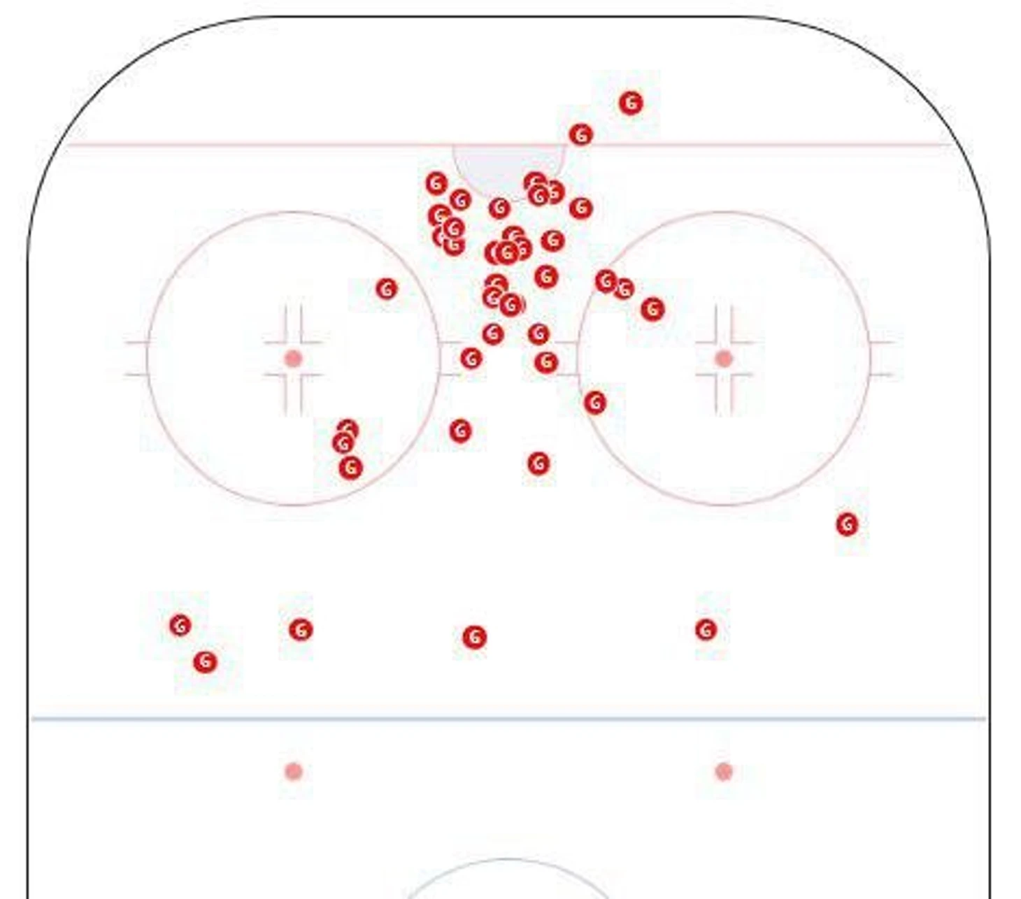 И еще раз про оборону – это карта голов, пропущенных Коноваловым в равных составах.