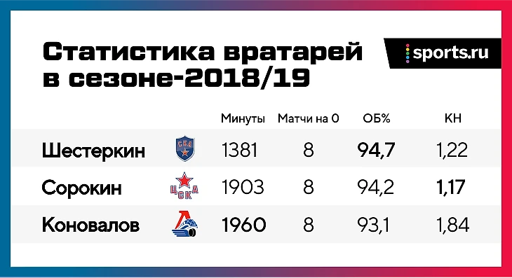 Сразу стоит отметить уверенную работу с бросками, которые идут низом – Коновалов хорошо работает щитками, и надежно прикрывает «домик». С бросками верхом ему справляться сложнее – дело в небольшом росте (похожая тенденция у Шестеркина и Сорокина). Это не самые плохие показатели, если учитывать, что в среднем по воротам «Локомотива», например, наносят на 5 бросков больше, чем по воротам ЦСКА.