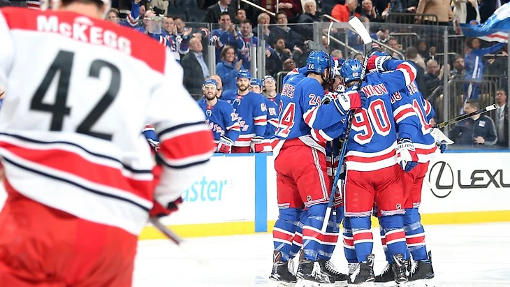 "Нью-Йорк Рейнджерс"-"Каролина Харрикейнз" 6:2.Мика Зибанеджад набрал 4 очка (2+2),Матс Цуккарелло отдал 3 результативные передачи,Павел Бучневич и Энтони ДеАнджело забросили по 2 шайбы,Крис Крайдер и Бу Ньевес отдали по 2 результативные передачи,Владислав Наместников отдал результативную передачу,Хенрик Лундквист отразил 34 броска.У гостей Саку Мяналанен забросил 2 шайбы.
