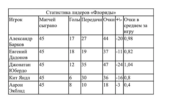 Все остальные сочетания заметно отстают в плане набранных очков, пускай у них меньше коэффициент "плюс- минус", но очков за игру у многих за 45 игр не перевалили и за десятку, «Флориде» точно нужно равенство состава, которого сейчас, к сожалению, нет.