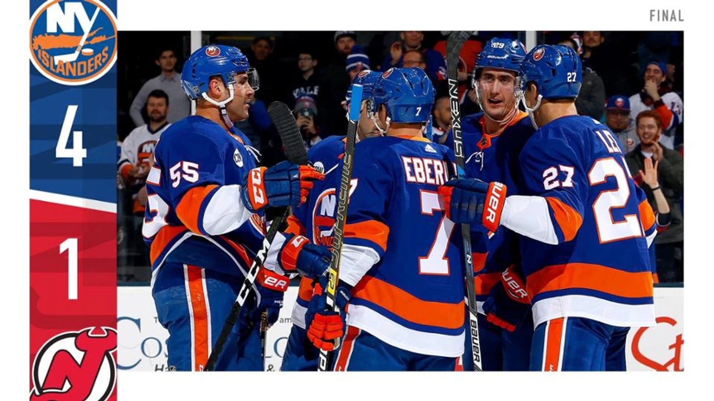 "Нью-Йорк Айлендерс"-"Нью-Джерси Дэвилз" 4:1.Андерс Ли забросил 2 шайбы,Джордан Эберле набрал 2 очка (1+1),Ник Лэдди отдал 2 результативные передачи,Робин Ленер отразил 16 бросков."Островитяне" выиграли 3 матч подряд.