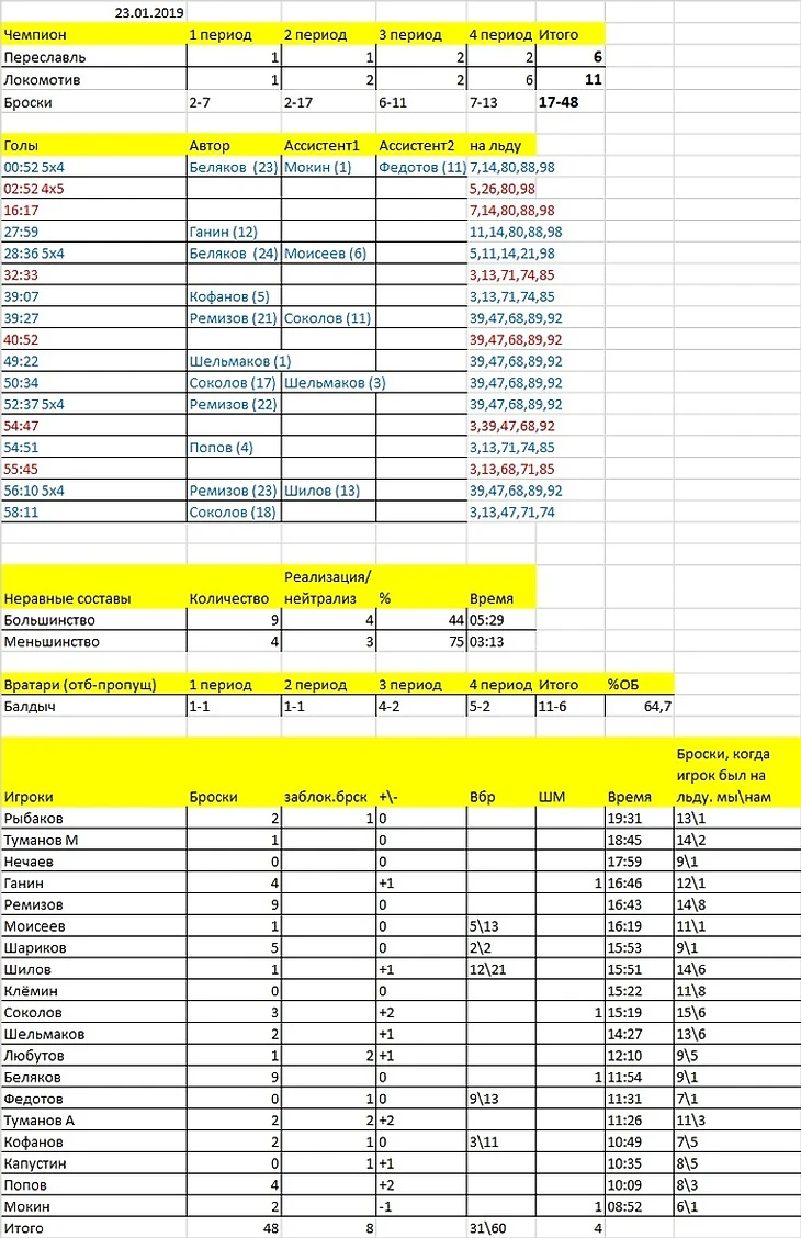 Беляков 4.5. Как он продолжает убивать всех вратарей, которые ему попадаются, своим коронным броском-барабулькой – загадка. Как и сам Кирилл. То, что команда ему абсолютно не нужна, мы уже поняли. Но ведь чуть не просадили из-за этого Переславлю. Хотя, я думаю, его это мало волнует. 9 бросков в створ, 4 из которых в ситуации, когда партнёр был один на пустых воротах. Но дубль.