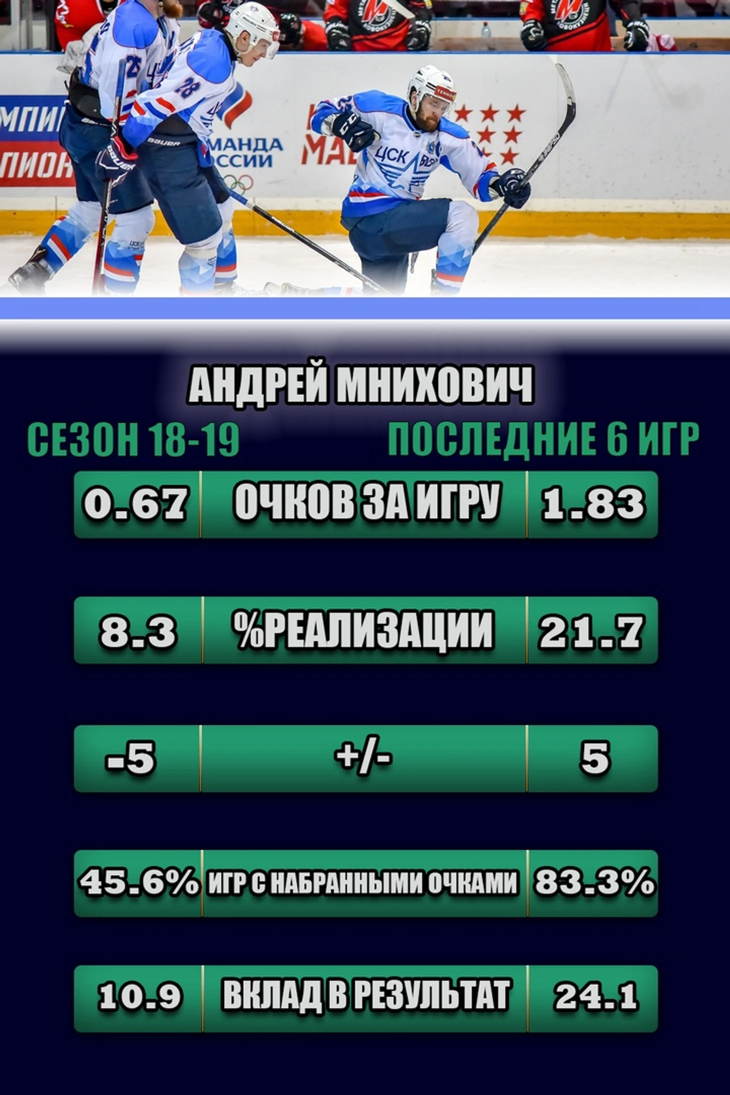 В последних матчах в атаке летчиков главным действующим лицом стал Андрей Мнихович и у этого явления есть объяснения. Андрей изменил свой стиль игры, возможно под влиянием тренера, но все же. Давайте взглянем на основные изменения.