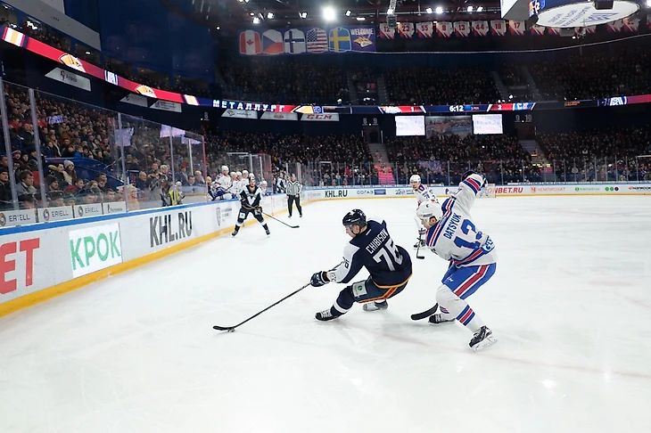 В первом периоде болельщики не увидели заброшенных шайб. Счёт на 35 минуте открыл "Металлург": отличился Роман Любимов. В ассистентах у него Алексей Береглазов и Савелий Ольшанский. Для Савелия эта передача стала первым результативным баллом в КХЛ. Отыграться армейцы смогли лишь в третьем периоде: в самом дебюте воспитанник магнитогорского хоккея - Алексей Бывальцев уровнял счёт на табло. За 10 минут до конца основного времени Наиль Якупов с передач Гусева и Прохоркина вывел СКА вперёд. А за 4 секунды до конца, когда Василий Кошечкин сменился на 6 полевого игрока, точку в матче поставил Сергей Плотников.