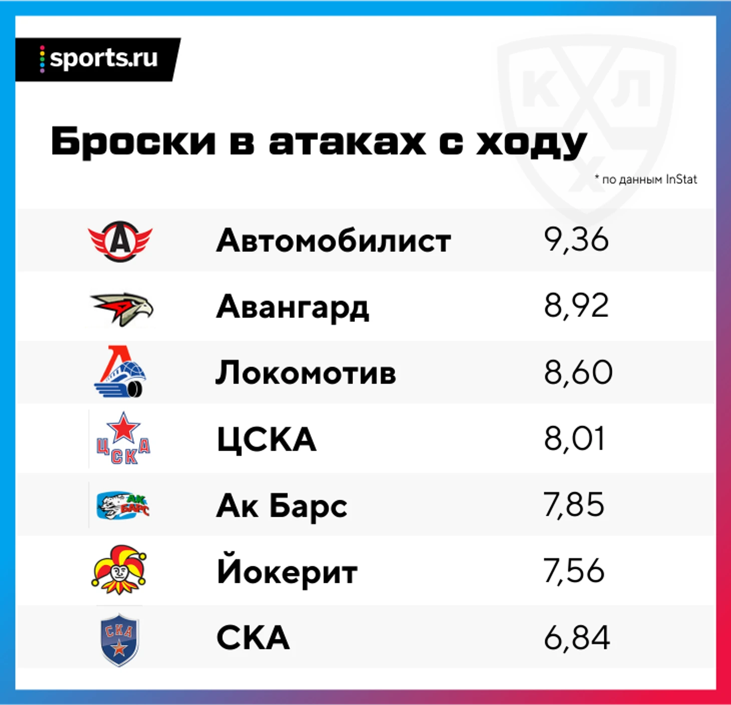 А по эффективности прессинг и отборам в зоне соперника 5 после Нефтехимика Авангарда СКА и ЦСКА.