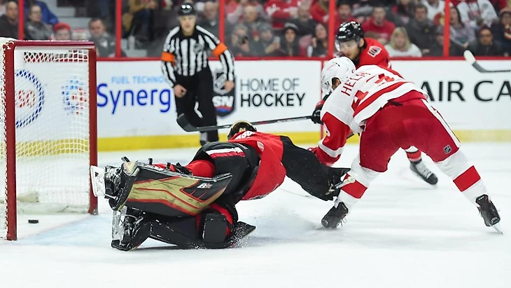 "Оттава Сенаторз"-"Детройт Ред Уингз" 0:2.Денни Декайзер и Даррен Хелм принесли победу гостям,Джонатан Бернье отразил 35 бросков и сыграл первый сухой матч в сезоне."Красные крылья" выиграли 3 матч подряд.