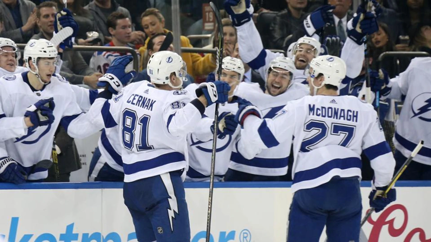 "Нью-Йорк Рейнджерс"-"Тампа-Бэй Лайтнинг" 2:3.Никита Кучеров отдал результативную передачу,Луи Доминге отразил 31 бросок.У хозяев Мика Зибанеджад отдал 2 результативные передачи.