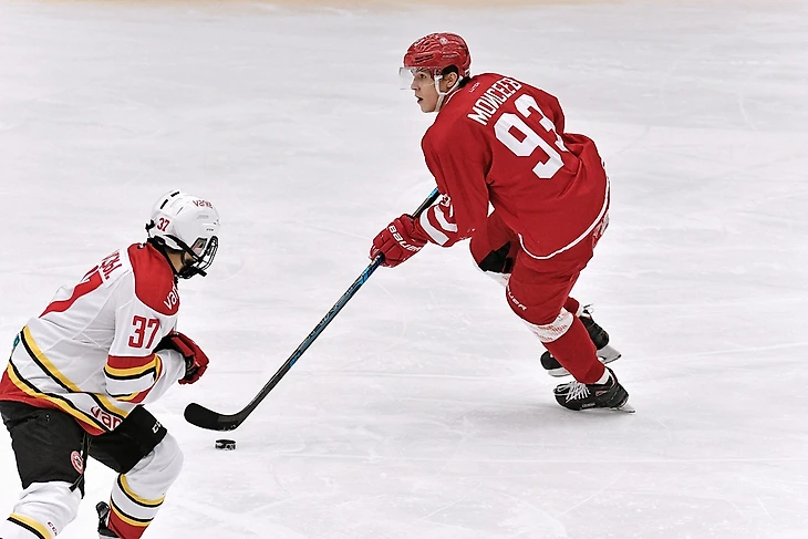 Этот форвард в последнее время проявляет себя все лучше и лучше. В данном случае команда и вовсе играла в меньшинстве (!), но он не побоялся взять инициативу на себя, за счет техники и скорости прошел всю площадку, собрал защитников и выдал пас на пустые ворота. Даниил тоже молодец, не побоялся поддержать атаку, открылся и поставил точку.