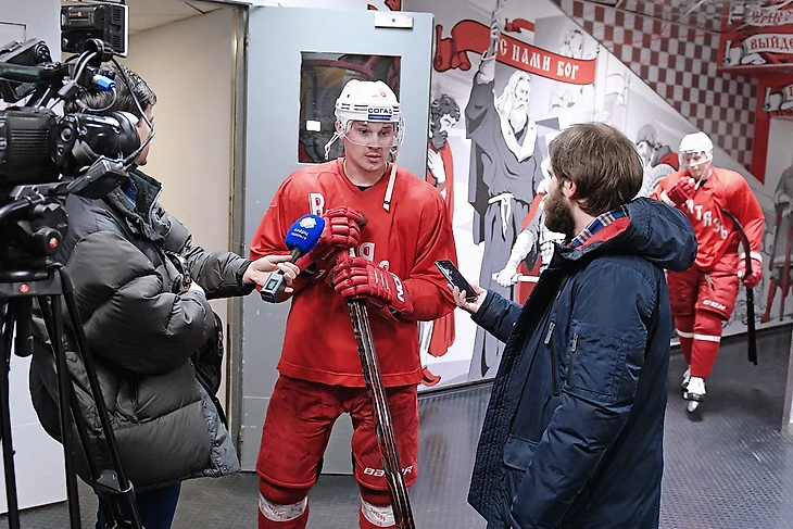 Сразу по окончанию занятия мне удалось поговорить с защитником Евгением Катичевым, который подтвердил, что настроение в команде боевое: