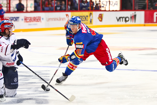 Jokerit (Helsinki) дома при практически аншлаговой аудитории переиграли в столичном дерби HIFK (Helsinki) 5-3. Хозяева имели преимущество по ходу всей игры (соотношение бросков в сторону ворот 55-34), и действующим чемпионам Суомен-лиги удалось поддерживать пристойную дистанцию в счете лишь за счет отличной реализации большинства, которое они использовали в двух случаях из трех. Три первые шайбы Jokerita забило в полном составе их ведущее атакующее трио - Филппула, Ивз и Хардт. Вратари Килпеляйнен (Jokerit) 22/25 - Лунделл (HIFK) 30/35.