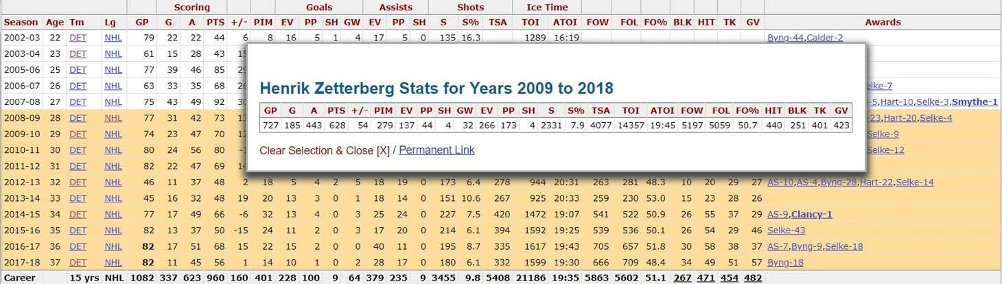 Х.Седин 1330 игр, 240 шайб, 1856 бросков, 12.9%
