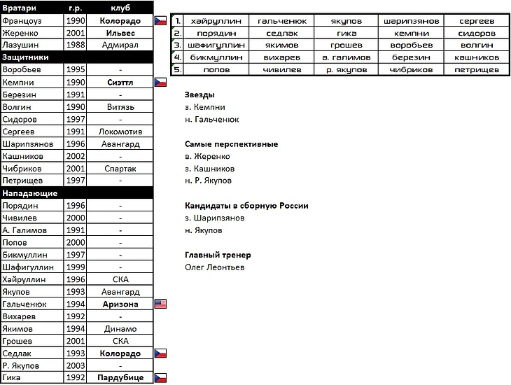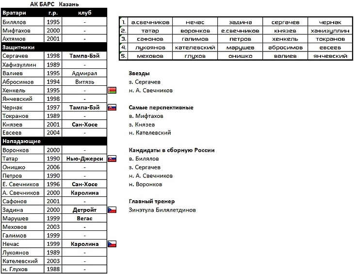 Вратарская линия не изменилась. В состав вернулись воспитанники: Сергачев, Валиев, Абросимов, Князев, Марушев, братья Свечниковы. Ранее клуб отказывался от легионеров и сделал ставку на опытных российских звезд. Сейчас же в команды пришли крутые чехи и словаки на пике Чернак и Нечас, Татар и Задина, которому нужен новый глоток воздуха и новый вызов.