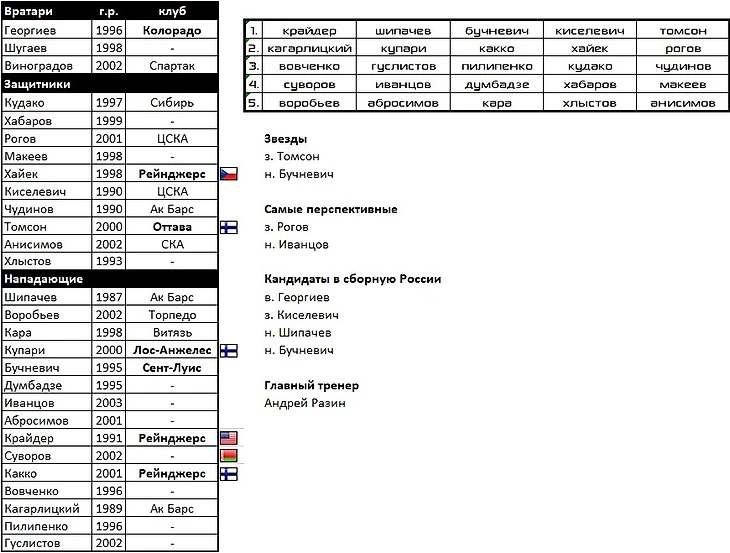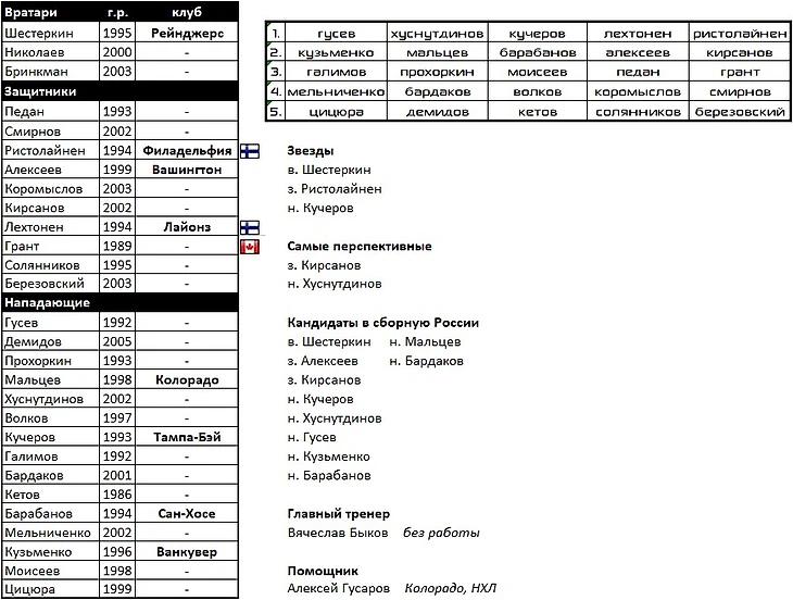 Тренировать призваны главный тренер сборной России и вернулся на помощь в Россию из Коламбуса Федор Тютин.