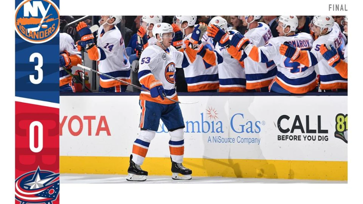 "Колумбус Блю Джакетс"-"Нью-Йорк Айлендерс" 0:3.Кейси Сизикас забросил 2 шайбы,Джошуа Бэйли набрал 2 очка (1+1),Томас Грайсс отразил 31 бросок и сыграл 4 сухой матч в сезоне.