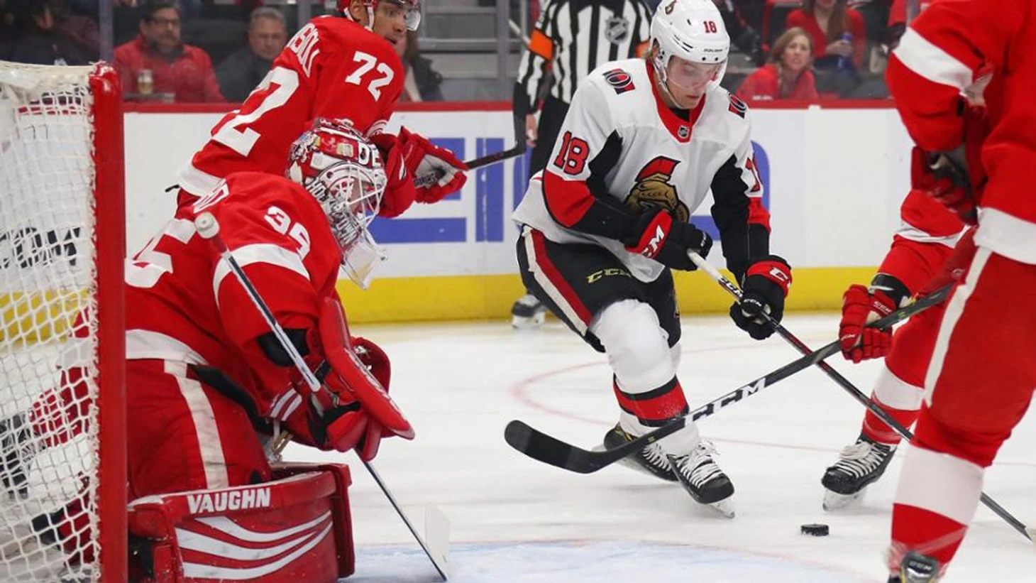 "Детройт Ред Уингз"-"Оттава Сенаторз" 3:2.Франс Нильсен за 3 минуты до конца матча забросил победную шайбу.Андреас Атанасиу забросил 2 шайбы,Джимми Ховард отразил 40 бросков в 500 игре за карьеру.В первом периоде Йонатан Эрикссон подрался с Брэди Ткачуком.