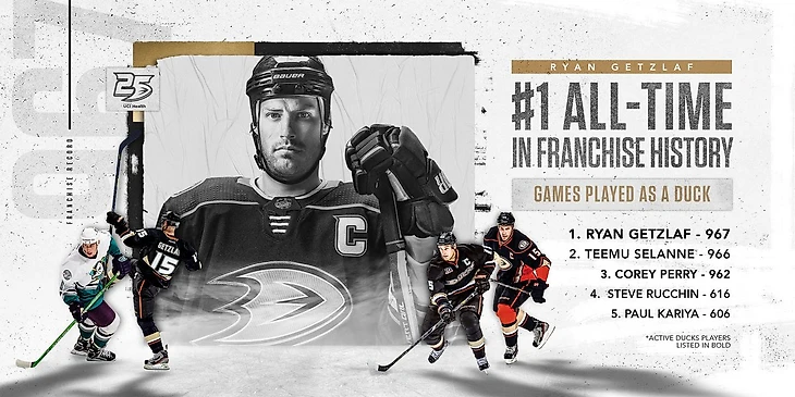 1 – Райан Гецлаф вышел на первое место по матчам в истории «Анахайма», игра с «Филадельфии» стала для него 967-й.