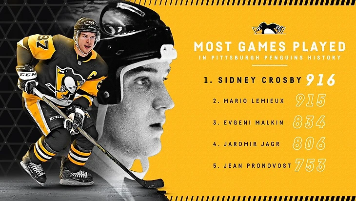 916 – матчей за «Питтсбург» стало у Сидни Кросби после игры с «Тампой», он вышел на первое место в клубной истории.