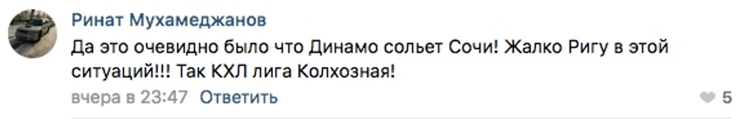 В официальной группе КХЛ во Вконтакте пользователи тоже в большинстве своем проявляют недовольство итоговым результатом и выражают уверенность в том, что между двумя командами существовал сговор.
