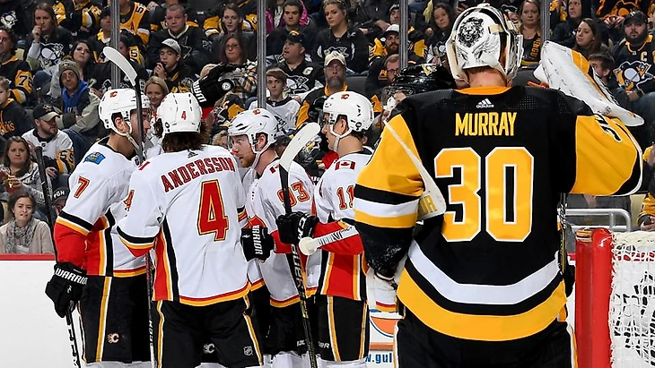 "Питтсбург Пингвинз"-"Калгари Флэймз" 4:5.Дерек Райан отдал 3 результативные передачи,Майк Смит отразил 34 броска.У хозяев Евгений Малкин набрал 3 очка (2+1),Сидни Кросби также набрал 3 очка (1+2).В первом периоде Маркус Петтерссон подрался с Сэмом Беннетом, во 2 периоде Джаред Макканн подрался с Расмусом Андерссоном."Огоньки" прервали серию из 4 поражений подряд.
