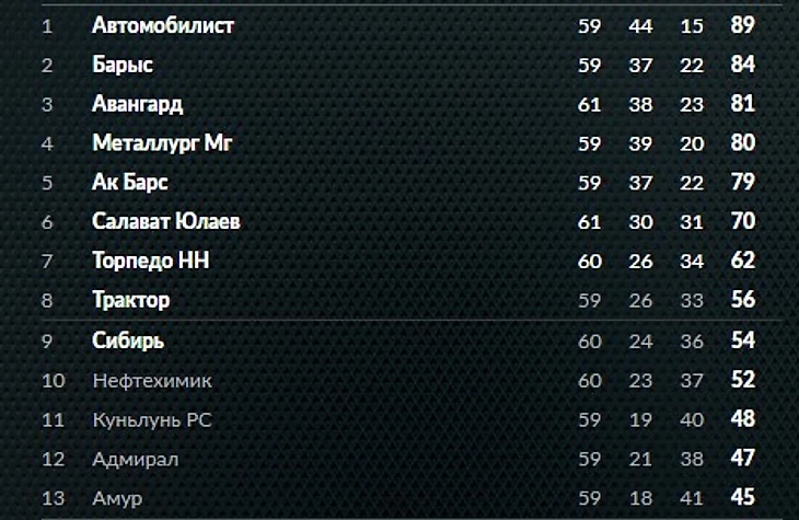 Таблица здесь достаточно плотная, и в зоне борьбы за восьмерку, и в зоне борьбы за первые места. Но данное изменение лишь усилило видимую конкуренцию в конференции – например, «Сибири» это изменение не на руку – поскольку побед в основное время у нее больше, она была бы уже в зоне плей-офф, вместо выигравшего восемь матчей в овертайме «Трактора».