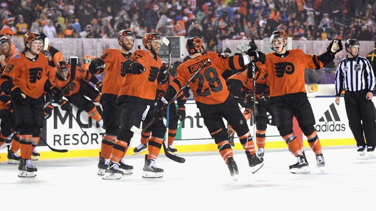 "Филадельфия Флайерс"-"Питтсбург Пингвинг" 4:3 (ОТ).Клод Жиру в овертайме принёс победу хозяевам.Якуб Ворачек набрал 3 очка (1+2),Шон Кутюрье и Клод Жиру набрали по 2 очка (1+1),Брайан Эллиотт отразил 40 бросков.У гостей Сидни Кросби набрал 2 очка (1+1),Евгений Малкин забросил одну шайбу.