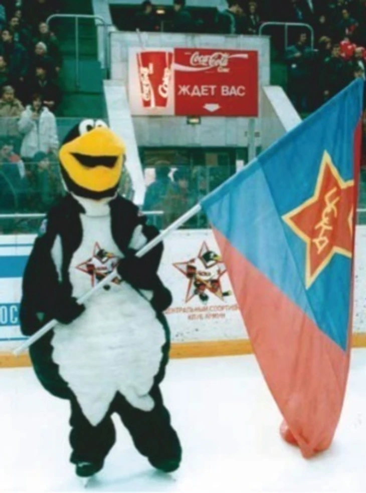 Уоршоу: правда, он плохо умел кататься на коньках. В первый день он должен был носить большой флаг ЦСКА, но практически сразу плюхнулся на лед. Он был очень неуклюжим, но это придавало нашему пингвину какой-то особый шарм. Болельщики швыряли в него еду и пиво, а также толкали, когда он уходил со льда.