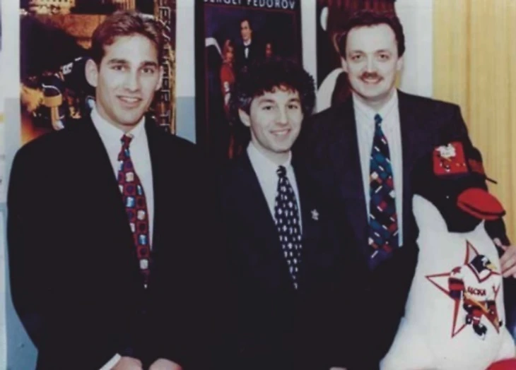 Говард Болдуин: после окончания сезона-1994/95 мы собрались в ресторане в Нью-Йорке, чтобы подвести итоги. Приехали и Тихонов с Гущиным. А с ними двое мужчин в черных костюмах, белых рубашках и с золотыми часами, которые были представлены как «наши новые русские партнеры», «новые банкиры». Позвольте заверить вас, что эти мужчины никогда не бывали даже в здании банка.