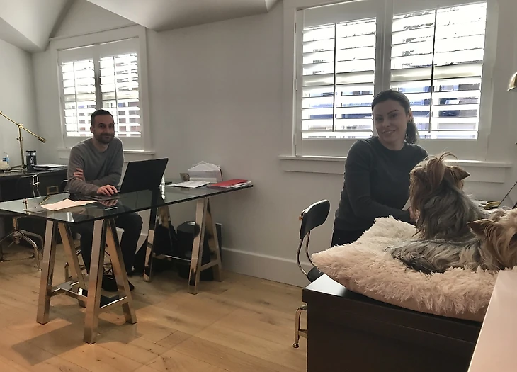 10:58 – Руа берет небольшой перерыв, но все равно не расстается с телефоном. Его батарея постоянна заряжена, а под рукой всегда запасной аккумулятор. Его жена, Адриана, которая также работает в фирме, шутит о работе мужа.