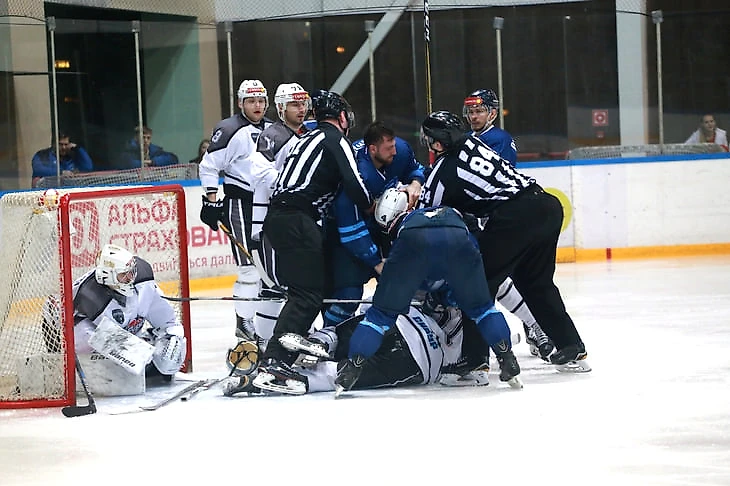 Но это был еще не конец. Когда судьи все-таки определись с полным количеством штрафов, и игра возобновилась в формате 3 на 4, игроки «Рязани» снова бросились на соперников.