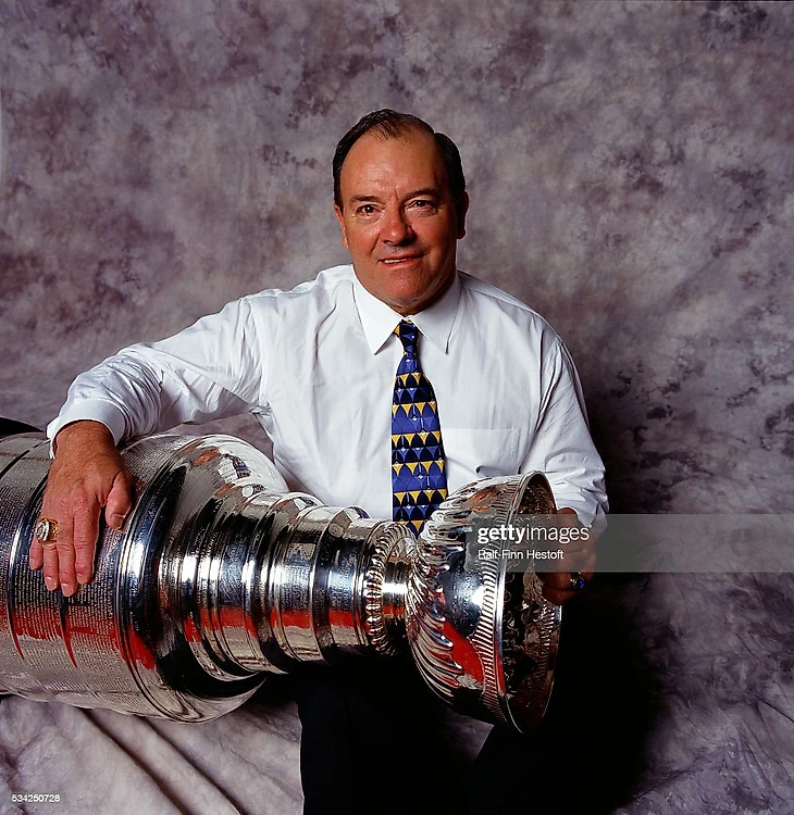 Скотти Боумэн, разумеется, в гордом одиночестве. У него 1244 победы и 9 Кубков Стэнли в качестве тренера. Человек, установивший стандарты современного тренерства и ставший символом стабильности и успеха