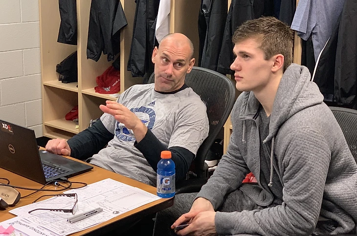 У Дрю Баннистера (на фото сверху) тоже есть некоторые видео для Костина. Сегодня утром они посмотрели около 20 клипов, в которых сосредоточились на нескольких ненужных штрафах, которые нападающий получал в последних играх.