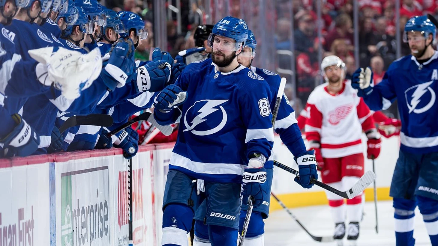 "Детройт Ред Уингз"-"Тампа-Бэй Лайтнинг" 4:5.Хозяева ведя с преимуществом в 3 шайбы умудрились пропустить затем 5 шайб подряд и в итоге проиграли.Никита Кучеров набрал 4 очка (2+2),Брэйден Пойнт набрал 3 очка (1+2),Стивен Стэмкос набрал 2 очка (1+1),Андрей Василевский отразил 23 броска.У хозяев Михаэль Расмуссен набрал 2 очка (1+1)."Молнии" выиграли 3 матч подряд.
