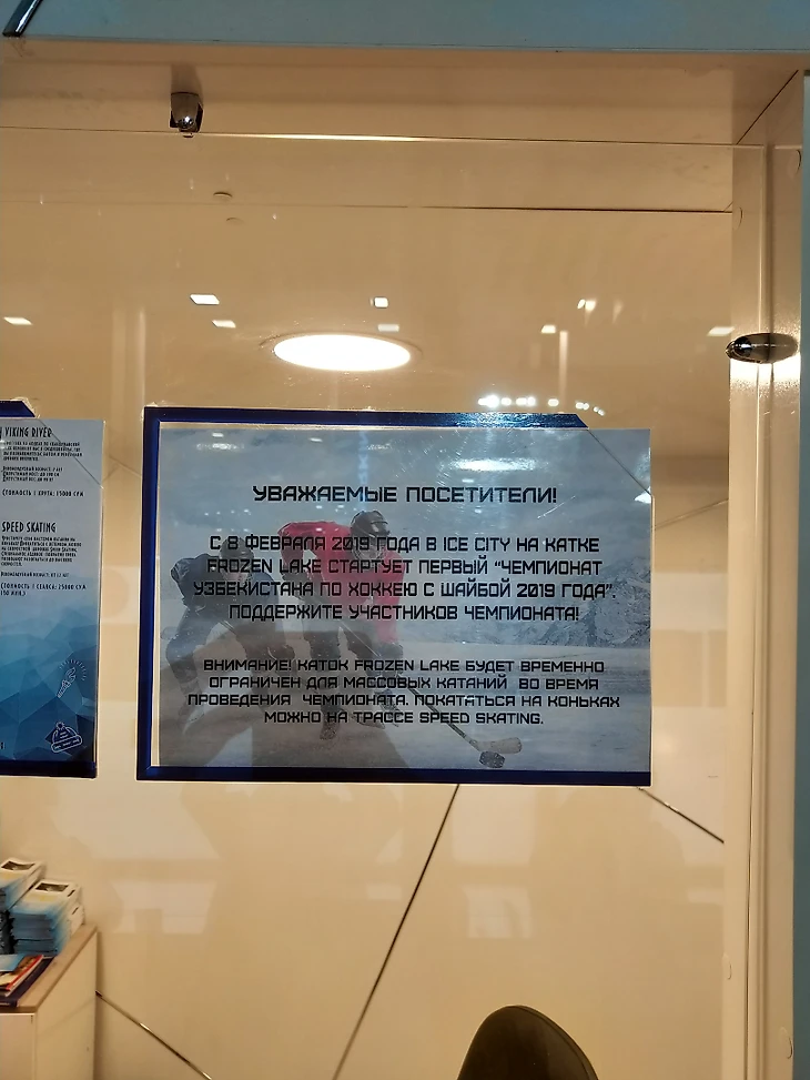 С оказией оказавшись в Ташкенте, не мог не пробить узбекский хоккей до того, как это стало мейнстримом! Часики то тикают, новости о планах и свершениях O'XF (O'zbekiston xokkey federatsiyasi) вызывают когнитивный диссонанс, а сегодня ещё и арену презентуют.