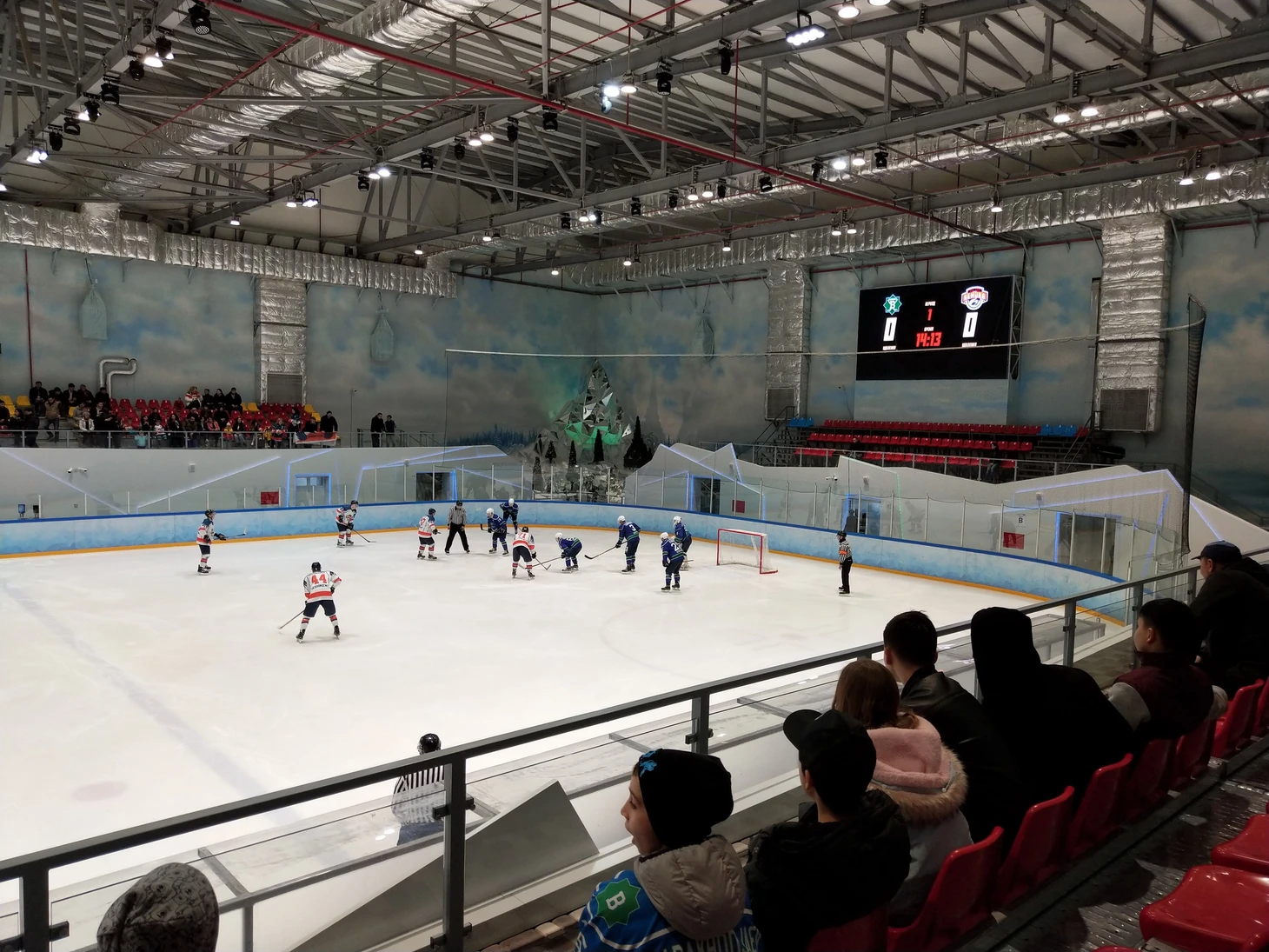 Небольшое количество зрителей, судя по всему ("Дядя Гена! Дядя Гена!"), состояло из родственников и друзей спортсменов. Но атмосферу они создавали, особенно неистово болели дети: топали ногами, кричали, махали флагом, гудели в гуделки. Периоды по 15 минут чистого времени. Бинокор пропускает первым, но затем шайба за шайбой завершает матч со счётом 3:1. Сказывается и численность: у Семурга два полных звена состава, у Бинокора три. Смотреть, честно, интереснее, что твою НХЛ (я про ту, что Ночная). Хотя и там, и там в командах все возраста, здесь двигались бодрее, моменты создавали интереснее.