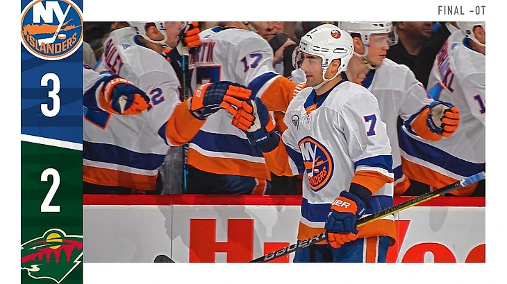 "Миннесота Уайлд"-"Нью-Йорк Айлендерс" 2:3 (ОТ).Брок Нельсон в овертайме принёс победу гостям.Брок Нельсон набрал 2 очка (1+1),Мэтью Барзал отдал 2 результативные передачи,Томас Грайсс отразил 32 броска.У хозяев Райан Донато отдал 2 результативные передачи.