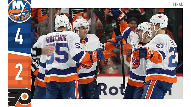 "Филадельфия Флайерс"-"Нью-Йорк Айлендерс" 2:4.Джошуа Бэйли забросил 2 шайбы,Брок Нельсон набрал 2 очка (1+1),Робин Ленер отразил 22 броска.
