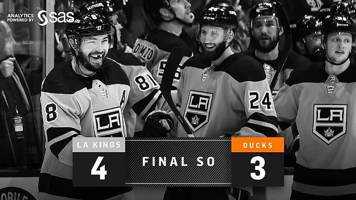"Лос-Анджелес Кингз"-"Анахайм Дакс" 4:3 (Бул).Анже Копитар в серии буллитов принёс победу хозяевам.Алек Мартинес отдал 2 результативные передачи,Джонатан Куик отразил 17 бросков.