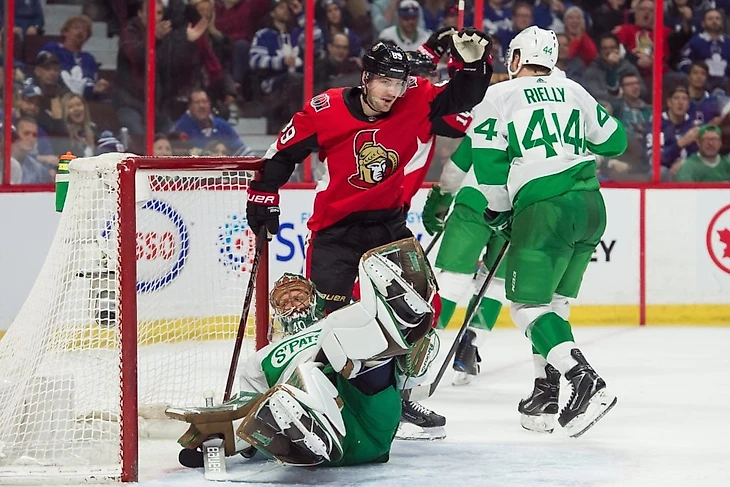 В матче против «Оттавы» незадолго до окончания второго периода Джон Таварес, находясь в своей зоне у синей линии под прессингом Криса Тирни, слишком оптимистично пульнул диагональ через всю среднюю зону на ход Митчу Марнеру. Пас был перехвачен, после чего «Сенаторы» организовали быструю контратаку три в два, завершившуюся голом