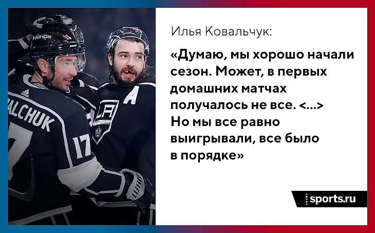Речь идет об отрезке с 5 по 19 января, когда Ковальчука вернули в тройку к Брауну и Копитару. В первой игре они помогли «Кингс» добить «Эдмонтон» – отличный гол при счете 3:0. Затем они забили «Сан-Хосе», но проиграли и микроматч («-1»), и сам матч. Потом была «Оттава» – поражение со счетом 1:4, ноль голов, что уже ставит под сомнение размышления Ковальчука.