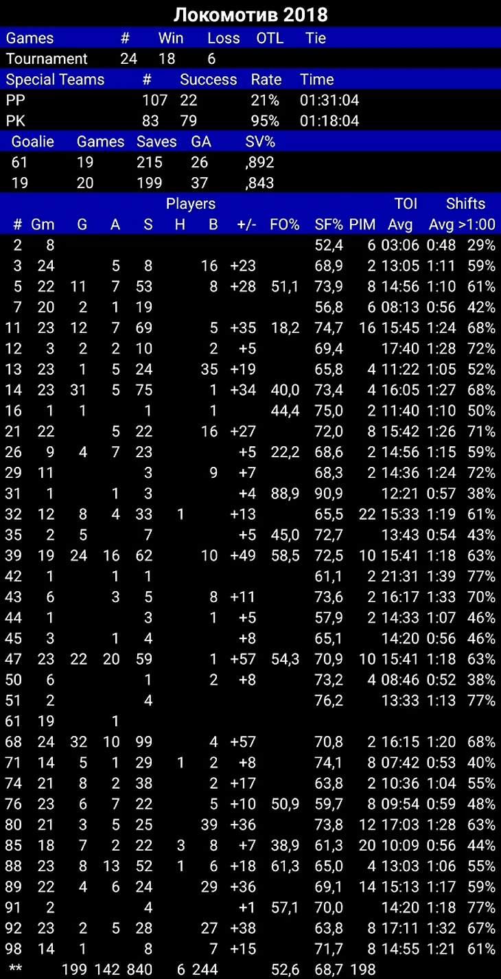 Рыбаков 5.5. Ваня был неудержим. Летал по всей площадке, жарил соперников в своей зоне, а сам не пожарил. Не хватает только смещения акцента в пользу передач на синей в невыгодных для броска ситуациях. Кстати, в отчётном матче до ворот ни разу его выстрелы не дошли. Но при нём по Дане не бросили ни разу. Показатель.