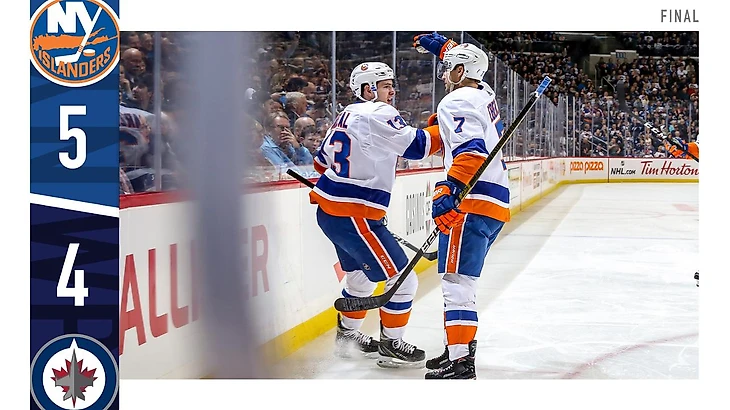 "Виннипег Джетс"-"Нью-Йорк Айледерс" 4:5.Джордан Эберле за минуту до конца матча забросил победную шайбу.Джордан Эберле набрал 3 очка (2+1),Райан Пулок отдал 3 результативные передачи,Мэтью Барзал и Андерс Ли набрали по 2 очка (1+1),Робин Ленер отразил 33 броска.У хозяев Адам Лоури набрал 3 очка (2+1),Брэндон Танев также набрал 3 очка (1+2),Джейкоб Труба и Натан Болье отдали по 2 результативные передачи.