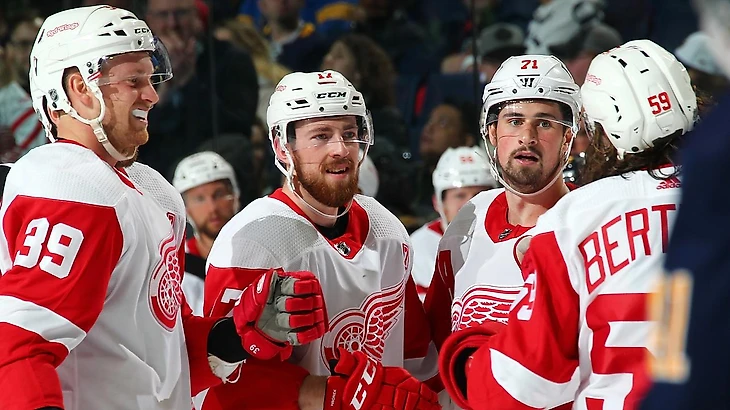 "Буффало Сэйбрз"-"Детройт Ред Уингз" 4:5 (ОТ).Тайлер Бертуцци в овертайме принёс победу гостям.Тайлер Бертуцци набрал 3 очка (2+1),Энтони Манта отдал 3 результативные передачи,Дилан Ларкин забросил 2 шайбы,Филип Хронек набрал 2 очка (1+1),Джимми Ховард отразил 35 бросков.У хозяев Кейси Миттельштадт набрал 2 очка (1+1)."Красные крылья" выиграли 3 матч подряд.