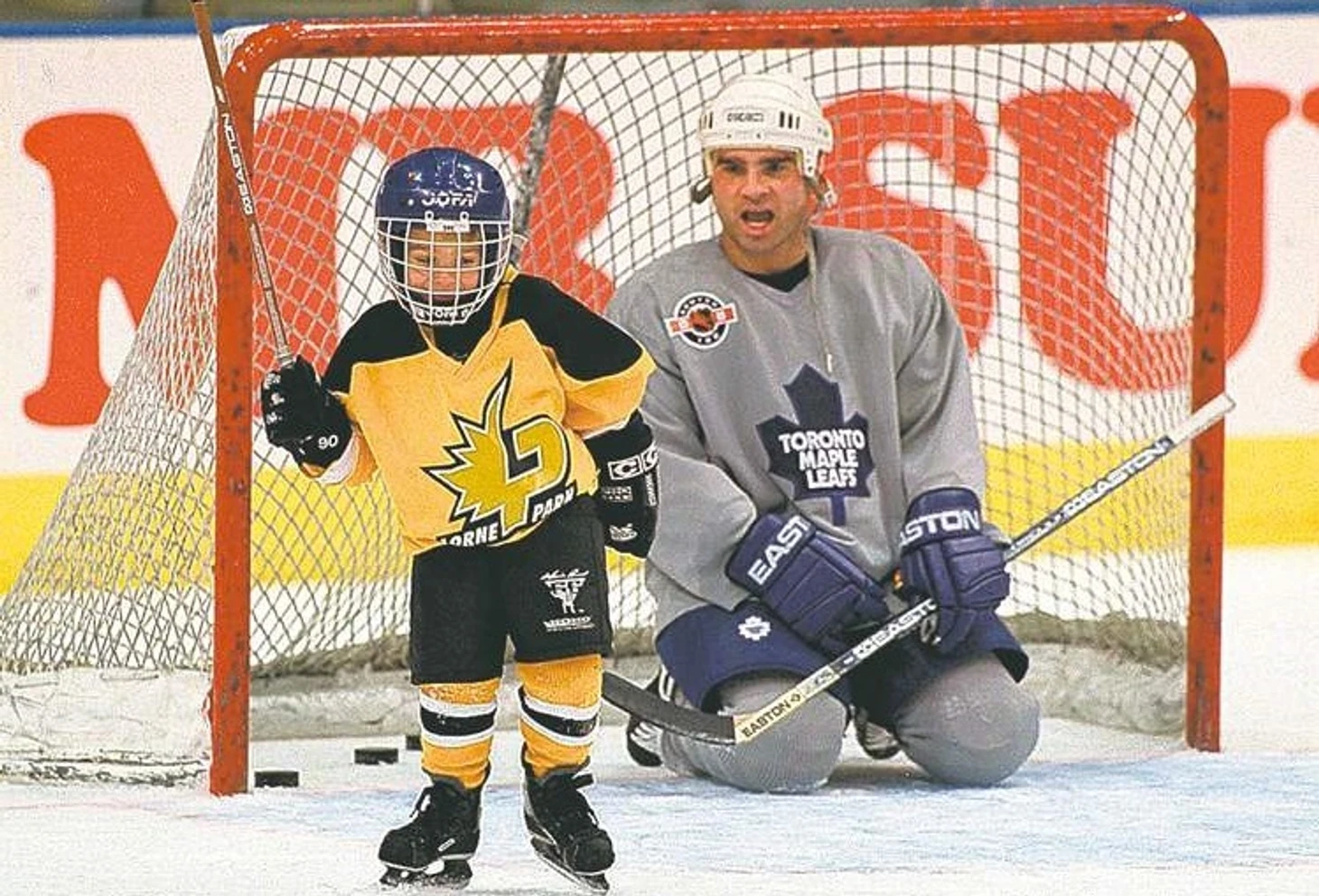Тогда ему было лет 10 или 11. Игрок детской команды «Торонто Мальборос». И если среди сверстников его не еще выделяли игровые таланты, то фамилия уж точно заставляла обратить на него внимание. Вспоминая тот случай, это была идея отца. Узнав, как его сын особенно почитает одного из партнеров Доми-старшего по «Торонто Мэйпл Лифс», он организовал встречу на льду Toronto Air Canada Center. Конечно, такой момент нужно было запечатлеть. И вот два игрока, оба носящие 13-и номера, встают друг напротив друга, притворяясь, что готовятся к вбрасыванию.