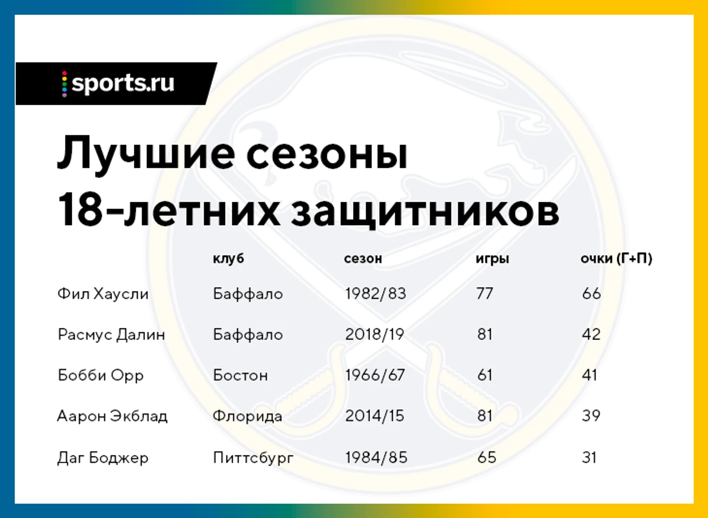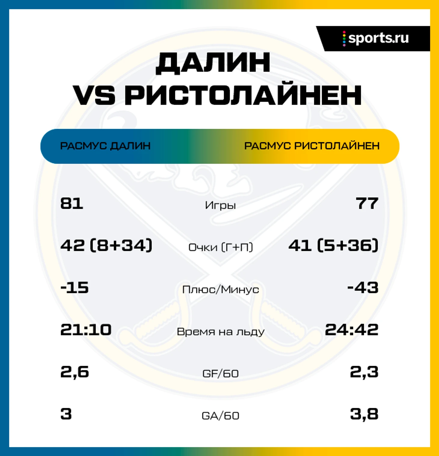 Но по оборонительной игре к Далину есть вопросы. 77 потерь — худший результат в команде. Сейчас в «Баффало» его не особо нагружают защитными обязанностями. В меньшинстве Расмус не выходит вообще, а 58,4% смен начинает в зоне атаки — самый большой показатель среди защитников в лиге. Каким бы крутым Далин ни был, ему всего 18 лет, и Фил Хаусли справедливо его бережет и постепенно адаптирует к НХЛ.